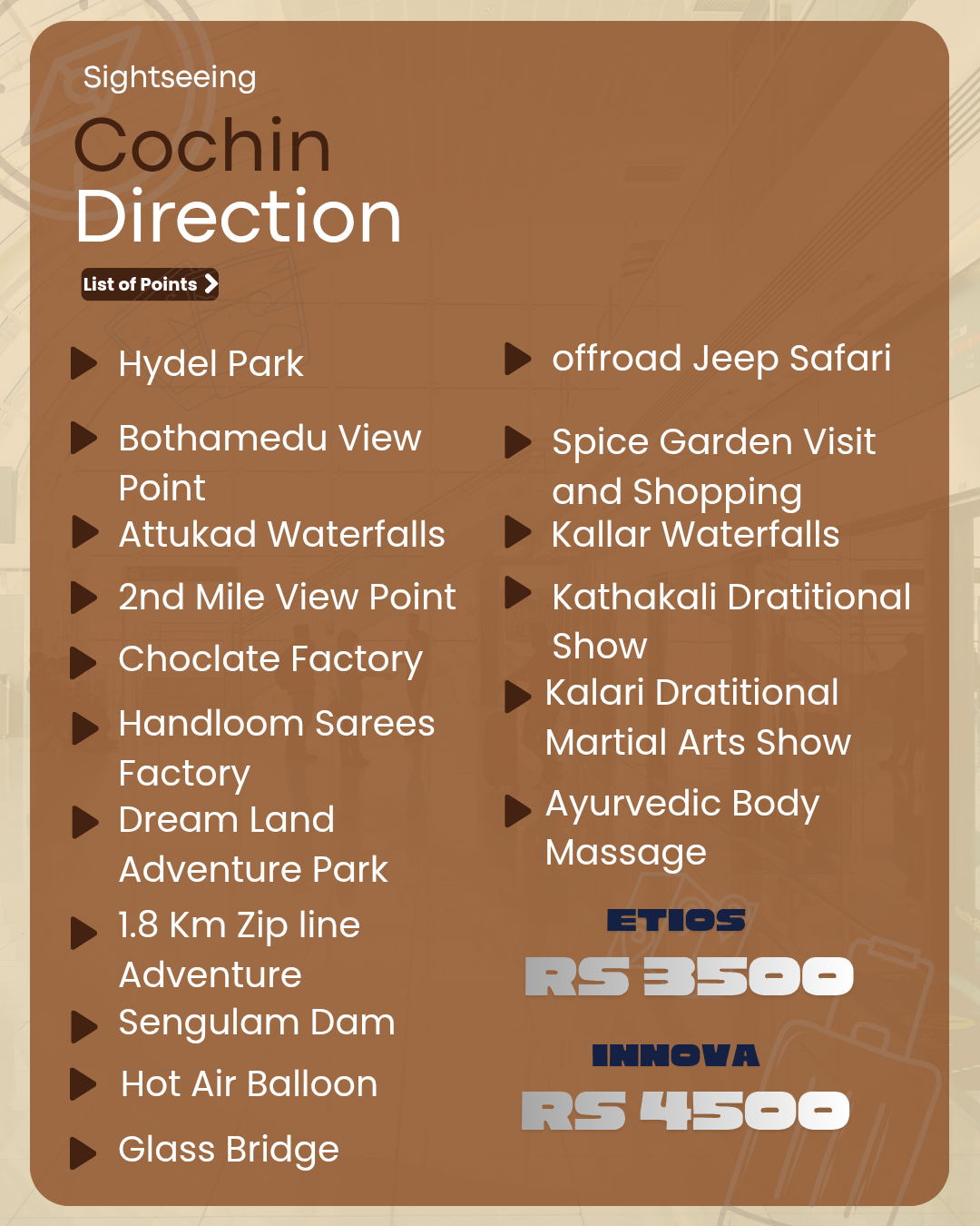 Munnar to all Kerala cab service price list