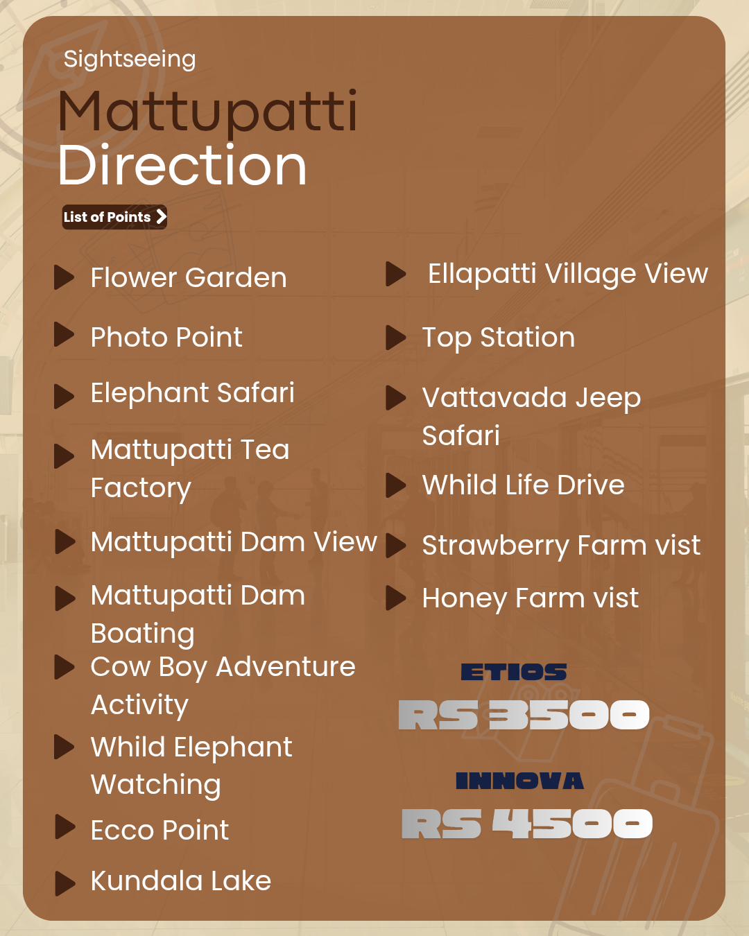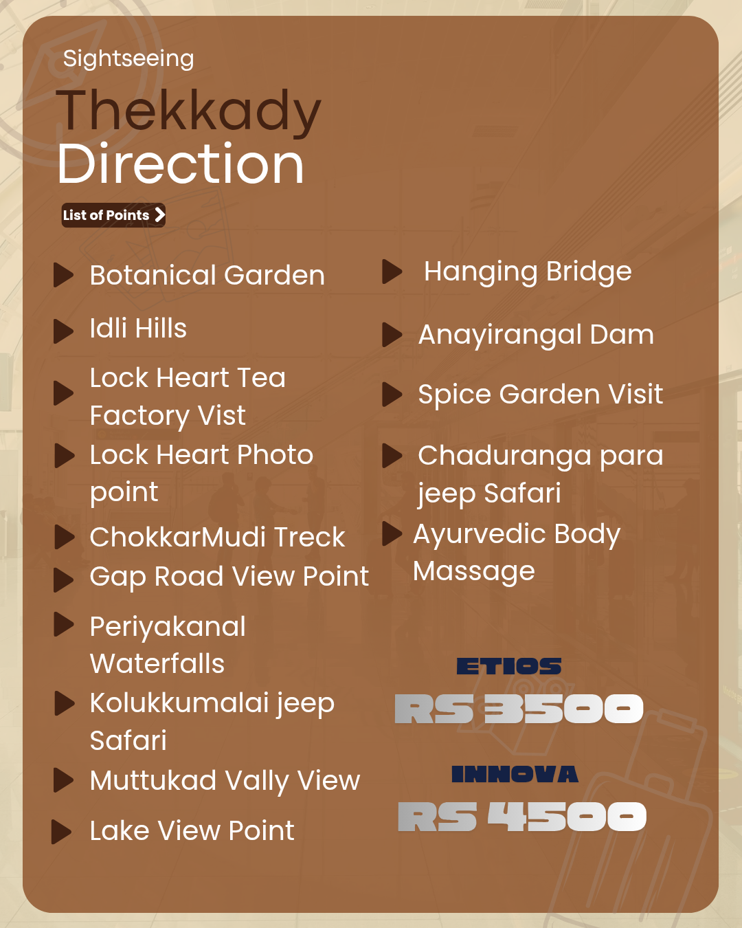 Munnar to all Kerala cab service price list